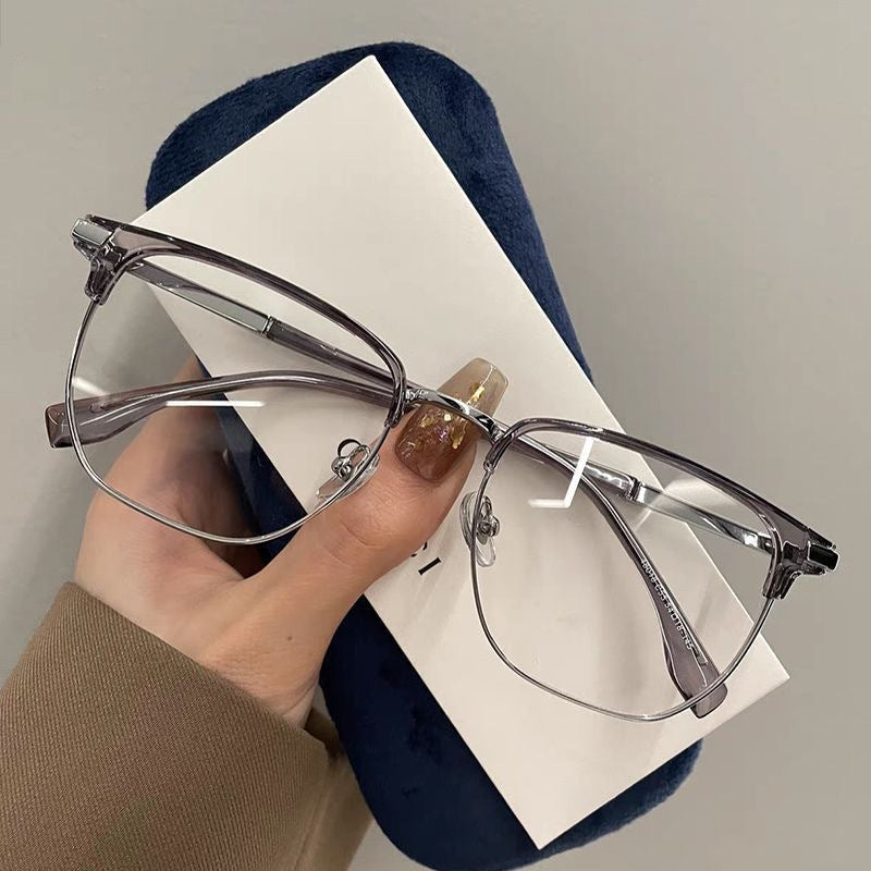 FASHIONABLE RETRO HALF-FRAME PLANO MYOPIA GLASSES