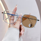 Women's Fashionable Metal Large Frame Color Changing Anti-Blue Light Sunglasses