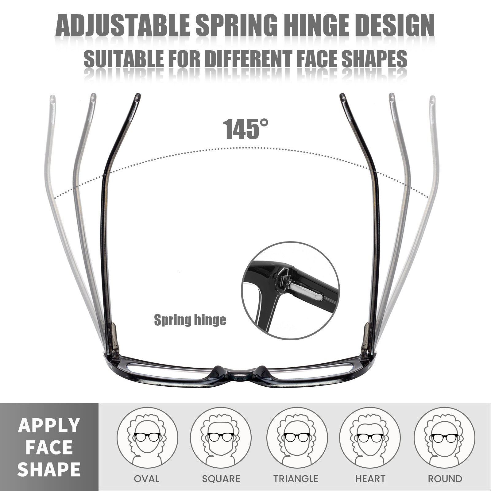 Universal Fit: Designed to complement a variety of face shapes. our square cat-eye blue light blocking reading glasses offer a flattering fit for everyone. Whether you have a round. oval. square. or heart-shaped face. these glasses are tailored to provide comfort and style. ensuring that you look and feel your best wherever you go.