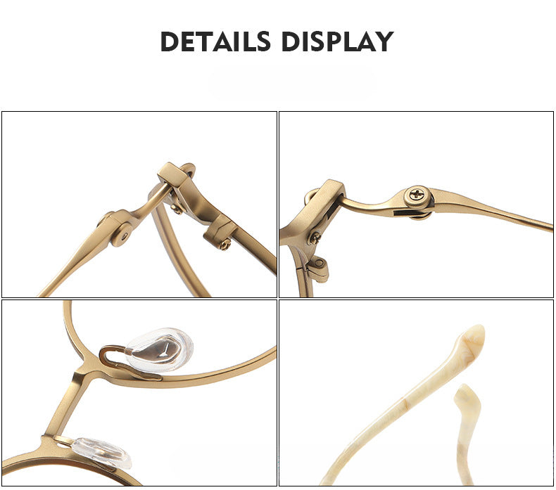 These stylish eyeglasses are made of polished and slender metal material. Featured with fashionable design. It is a good choice for man or women who are looking for a pair of fashionable eyeglasses.