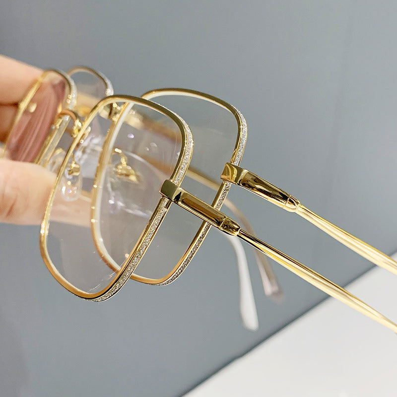 WOMEN'S FASHIONABLE FINE GLITTER EDGE LARGE FRAME ANTI-BLUE LIGHT READING GLASSES