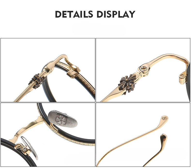 These stylish eyeglasses are made of polished and slender metal material. Featured with fashionable design. It is a good choice for man or women who are looking for a pair of fashionable eyeglasses.