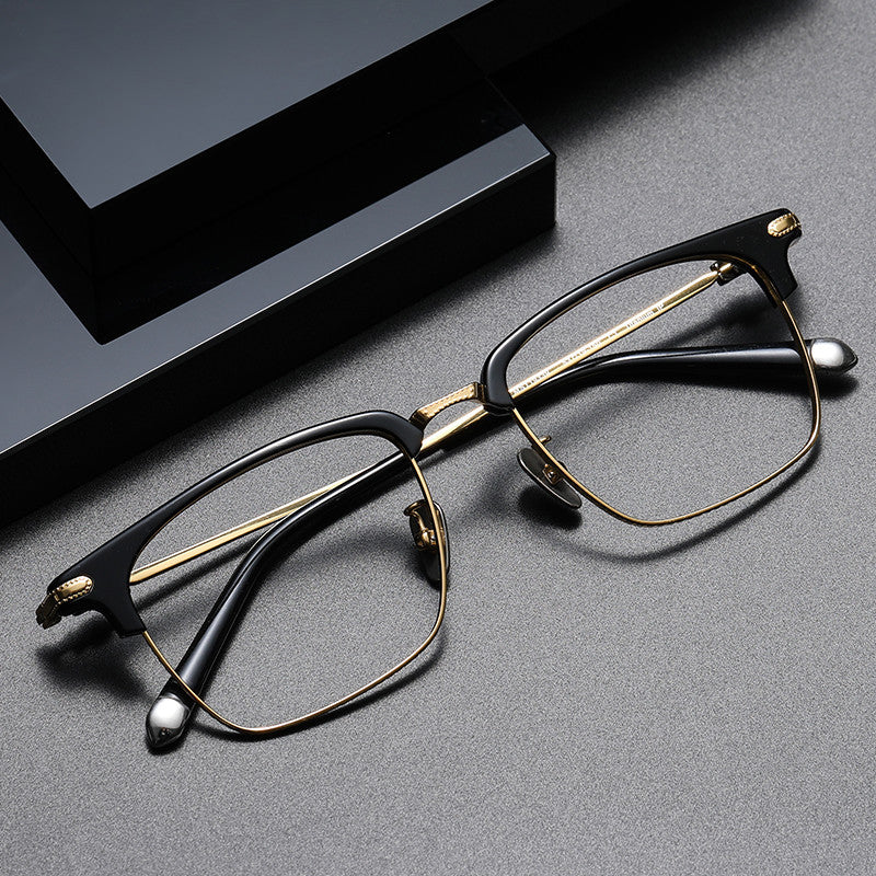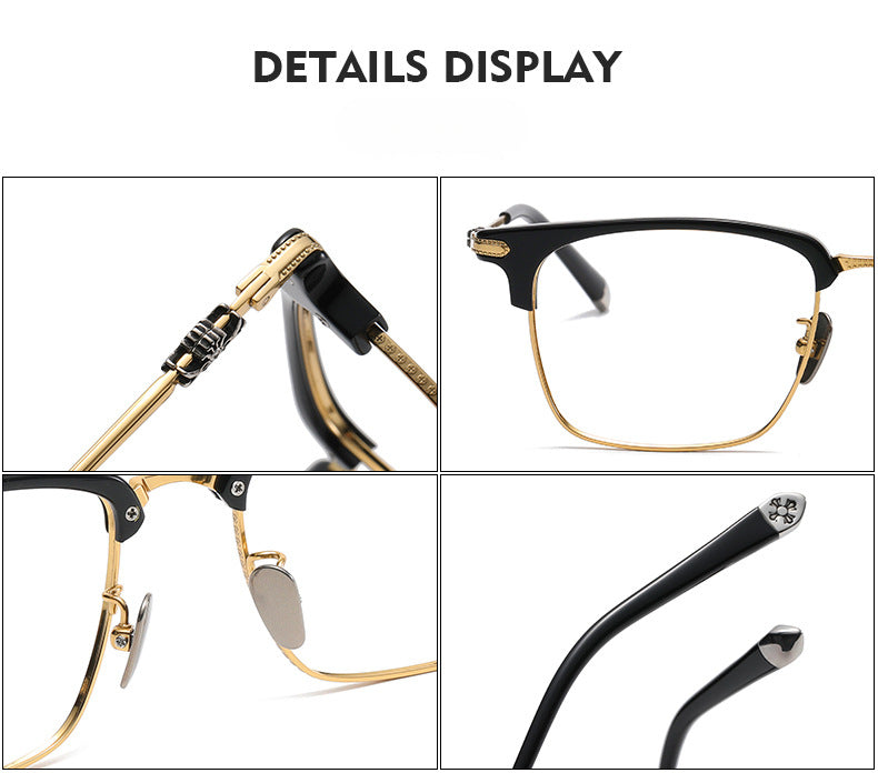 These stylish eyeglasses are made of polished and slender metal material. Featured with fashionable design. It is a good choice for man or women who are looking for a pair of fashionable eyeglasses.