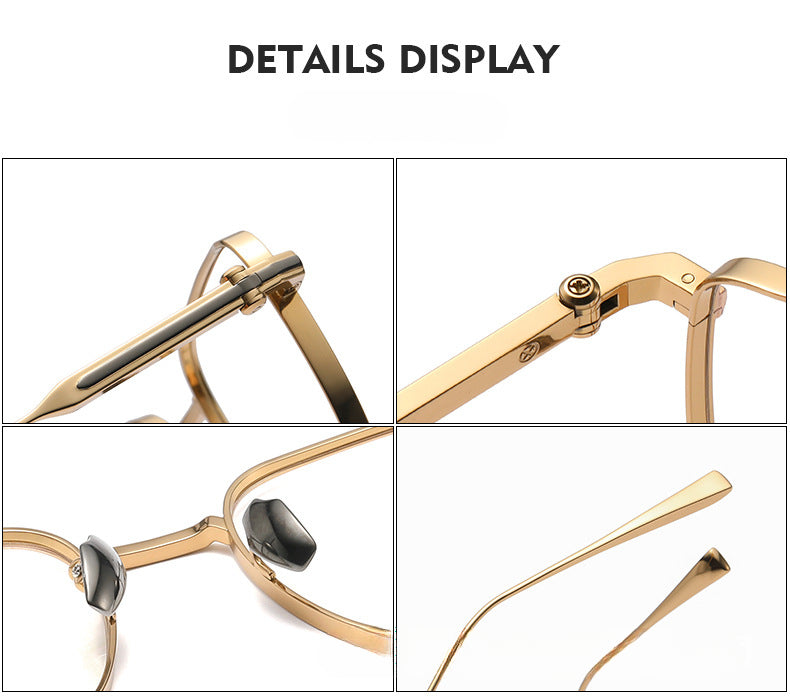 These stylish eyeglasses are made of polished and slender metal material. Featured with fashionable design. It is a good choice for man or women who are looking for a pair of fashionable eyeglasses.