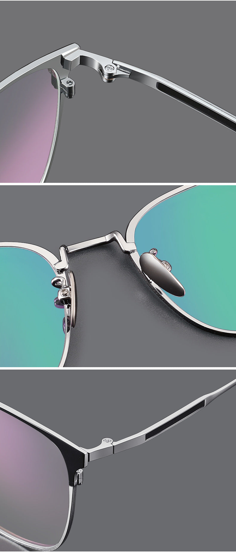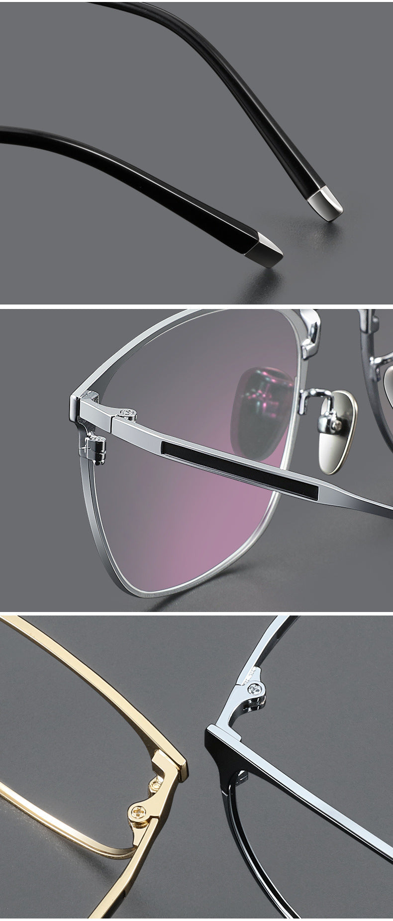 These stylish eyeglasses are made of polished and slender metal material. Featured with fashionable design. It is a good choice for man or women who are looking for a pair of fashionable eyeglasses.