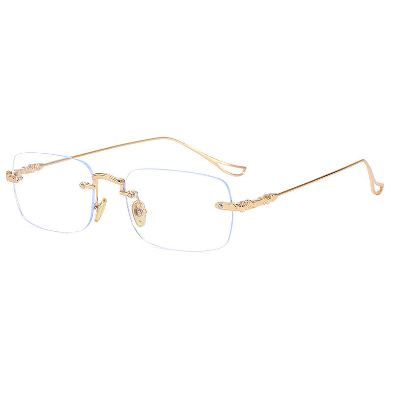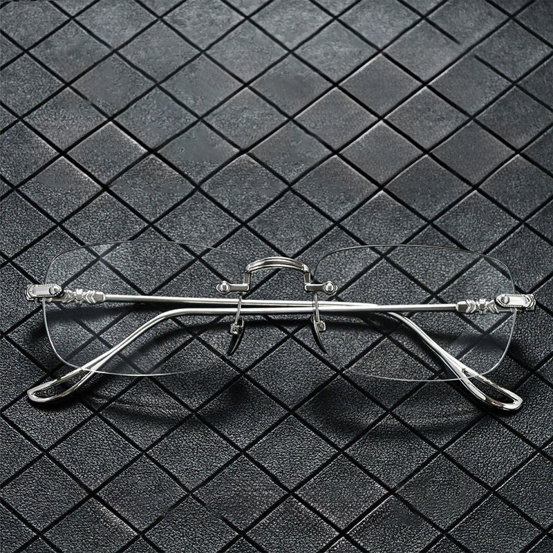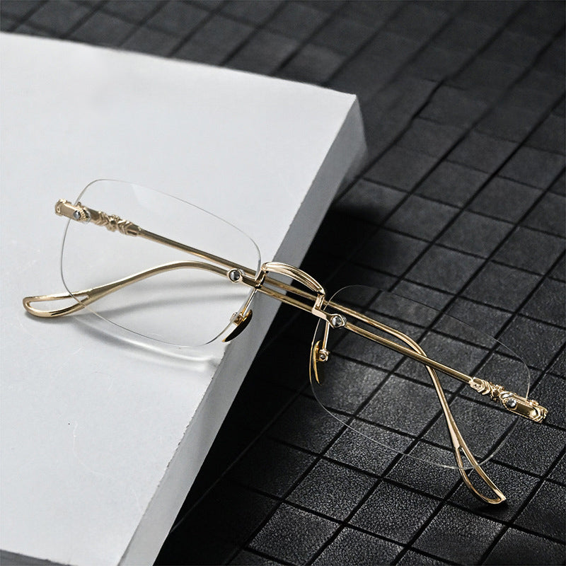 RETRO CARVED EDGE FRAMELESS BLUE LIGHT BLOCKING READING GLASSES