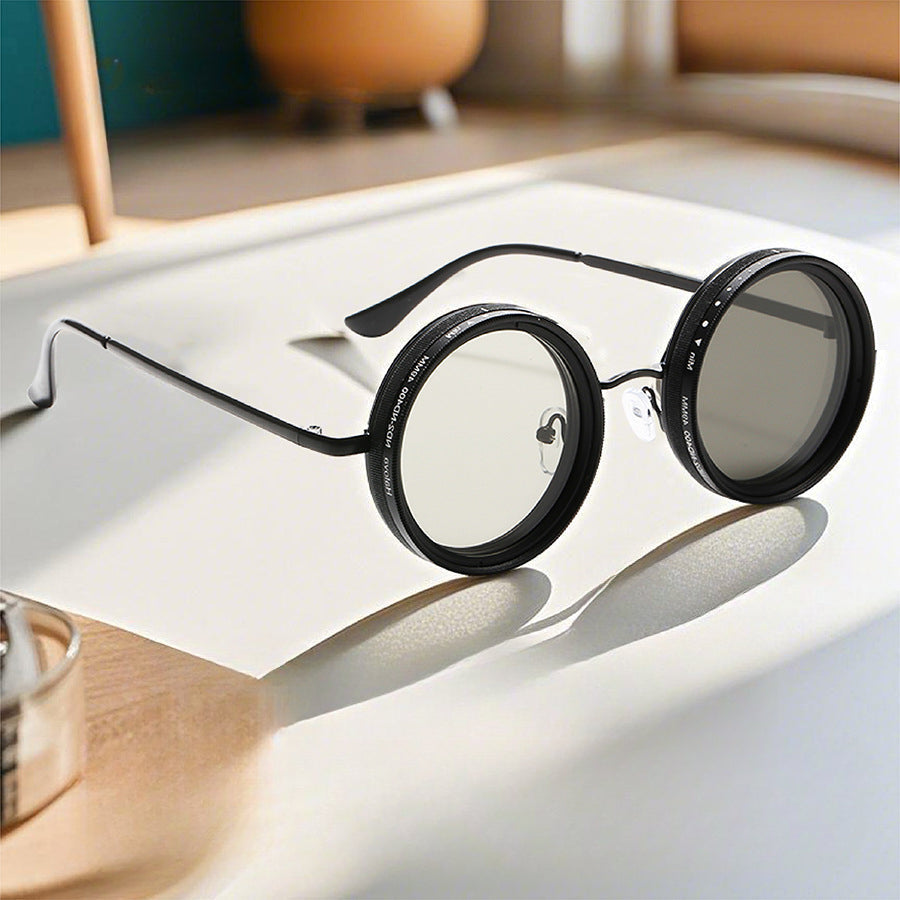 Carmo Retro Round Steampunk ND Dimming Sunglasses